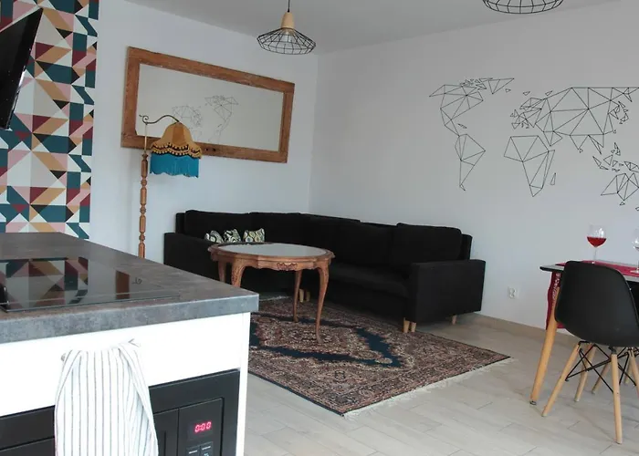 Located a mere 0.9 km from Church of Holy Heart of Jesus in Szczecin, the 1-room White Frog Apartment is around 25 minutes' walk from a top family-friendly place like Jump Szczecin Amusement Park. For guests with an active lifestyle, hiking are provided.